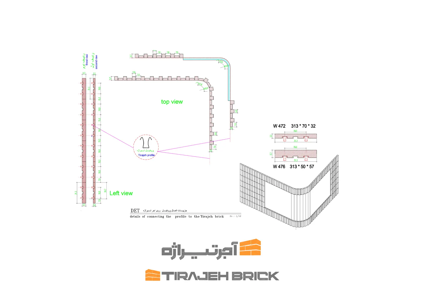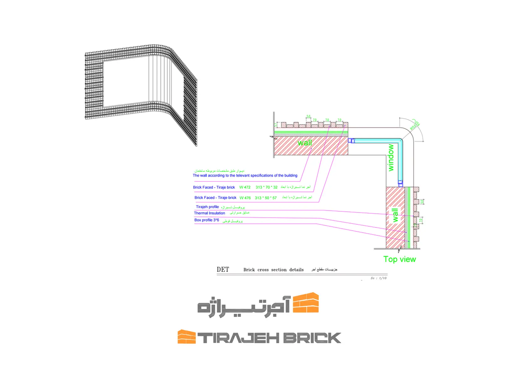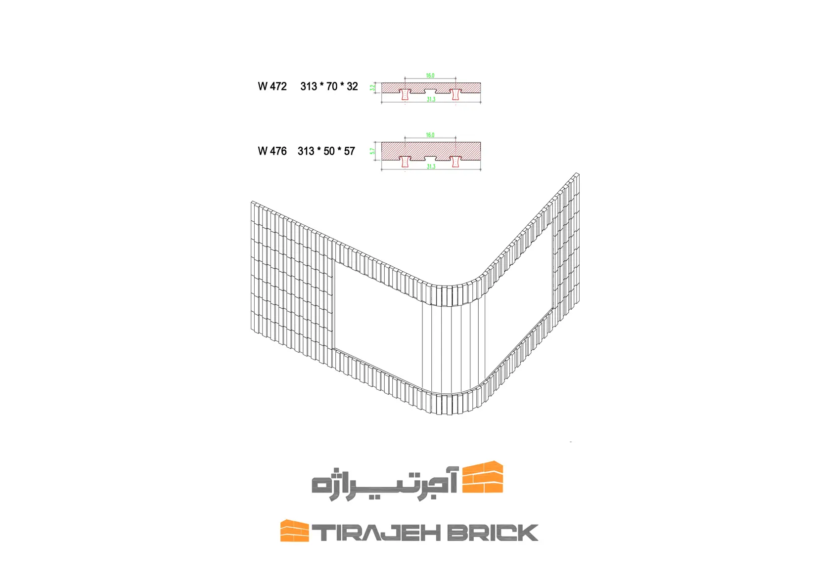 طرح آجر چینی قلمدانی عمودی قوس کوچک پنجره دار