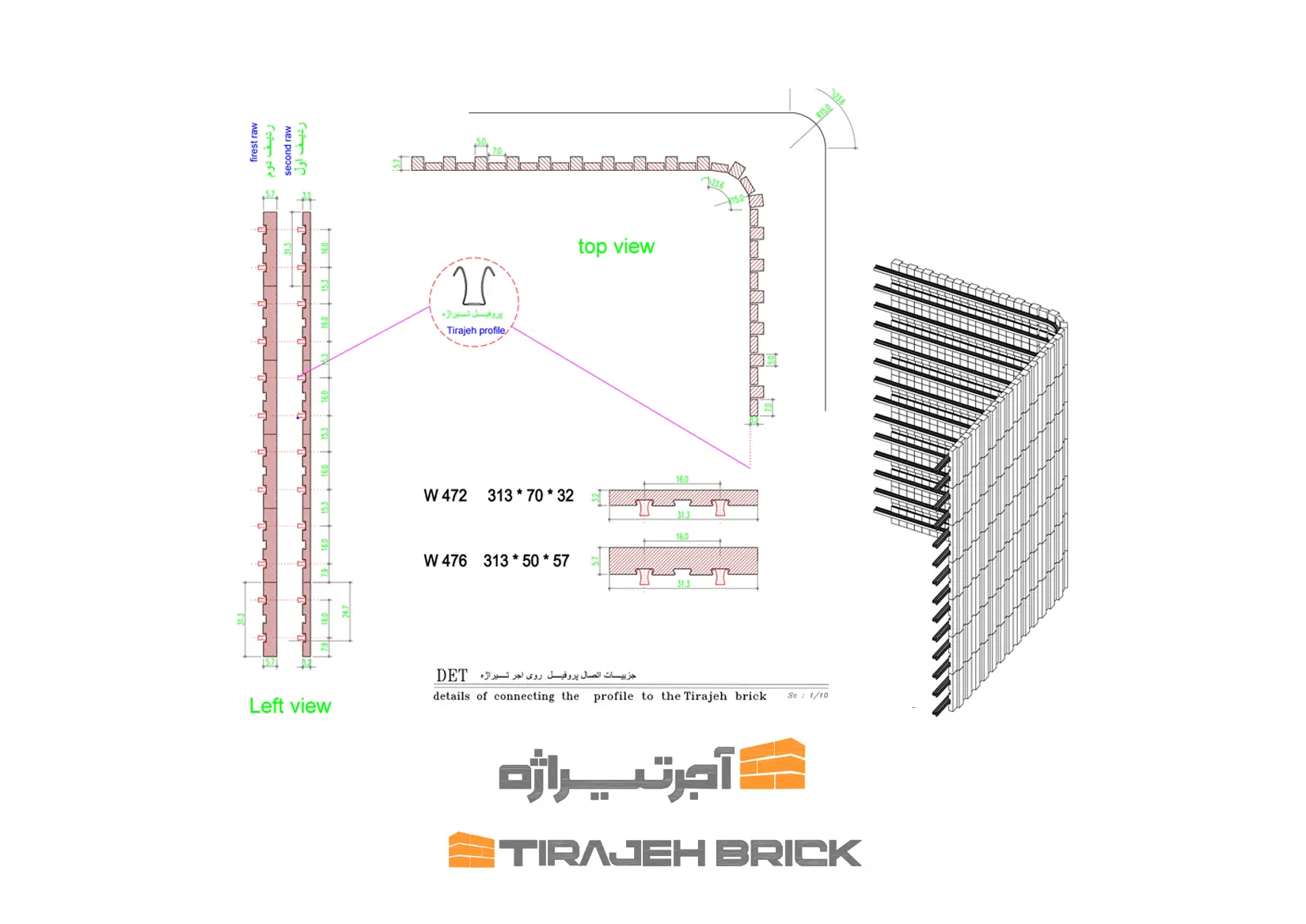 طرح آجر چینی قلمدانی عمودی قوس کوچک